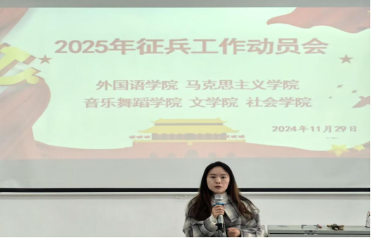击鼓催新征,扬帆再起航。为积极响应国家大学生征兵入伍号召,切实做好征兵工作,2024年11月29日下午,在北校区新利(中国)616阶梯教室,新利(中国)、马克思主义学院、音乐舞蹈学院、文学院和社会学院联合举行了2025年征兵工作动员会。