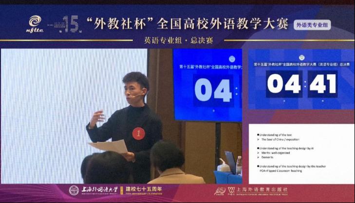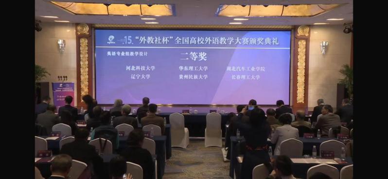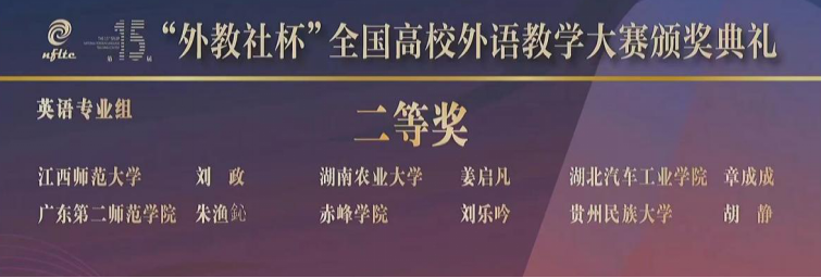 第十五届“外教社杯”全国高校外语教学大赛全国决赛、总决赛于12月6-8日在上海圆满落幕。新利(中国)教师胡静凭借扎实的专业知识、丰富的教学经验和独特的教学方法,赢得了评委和观众的一致好评,最终荣获英语专业组二等奖。