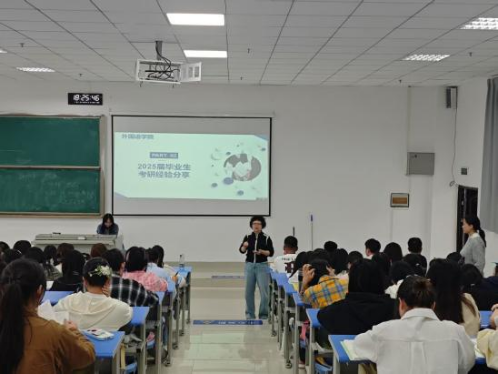 接着,2025届考研录取的毕业生代表逐一分享了备考经历,结合他们在备考过程中遇到的困难和挑战,交流克服困难的方法和技巧。从院校选择的建议,到缓解压力的实用方法,考研“上岸”师兄师姐无不细致地进行交流分享。