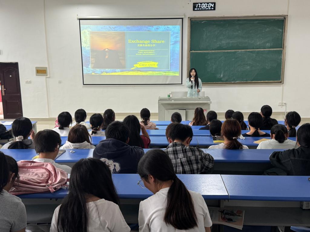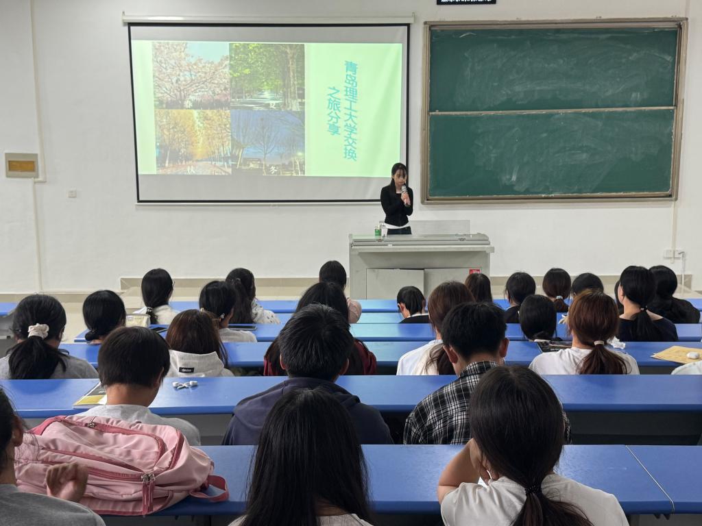 22级日语专业的杨坚桃与23级英语专业的张岚馨桐,分别讲述了她们在青岛理工大学交流学习期间的收获与感悟,从课程学习、文化体验到个人成长,生动有趣的经历激发了在场同学对参与交换生项目的浓厚兴趣。现场气氛热烈,掌声不断。