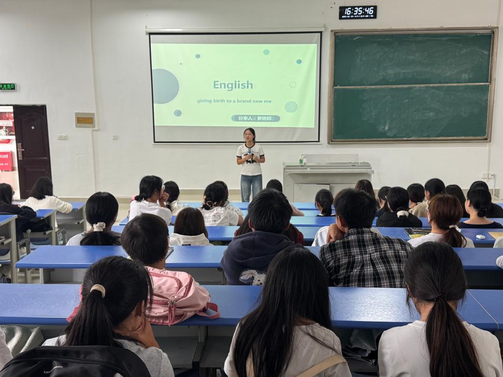 22级英语专业的罗绪婷和王雨欣则聚焦研究生推免项目,详细解读了申报流程、材料准备与面试要点,王雨欣还分享了她在马来西亚拉曼大学的交流学习见闻,拓宽了同学们的国际化视野。